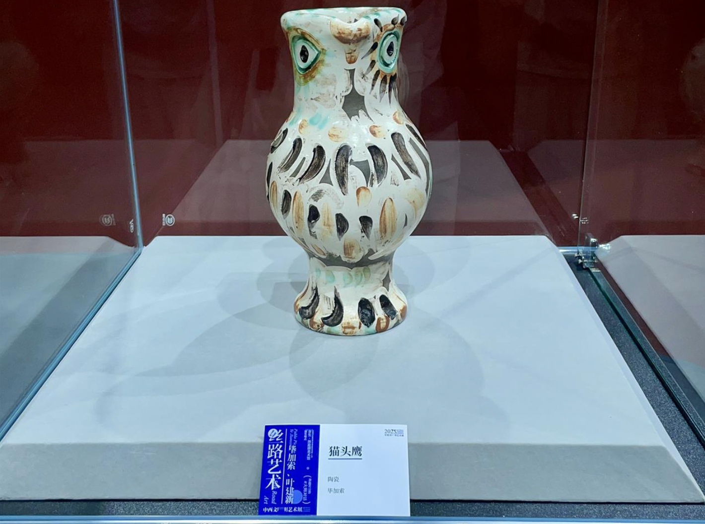 8月26日,畢加索真跡陶土雕塑《貓頭鷹》首次走出都市藝術(shù)場(chǎng)館,進(jìn)駐武漢江夏區烏龍泉街達芬奇美術(shù)館,與中國陶瓷設計藝術(shù)大師葉建新教授的《水墨琉璃》作品共同展出。