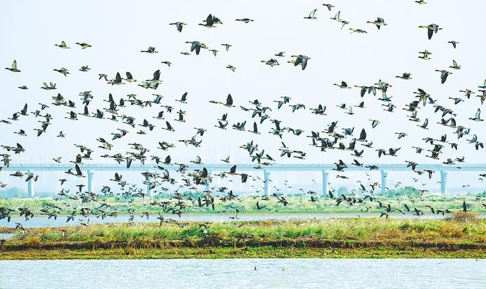 柏泉府河濕地提前迎來(lái)越冬候鳥(niǎo)