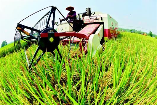 襄陽(yáng)是全國重要的糧食主產(chǎn)區,今年種植的308萬(wàn)畝中稻近日開(kāi)始收獲。(視界網(wǎng) 安富斌 攝)