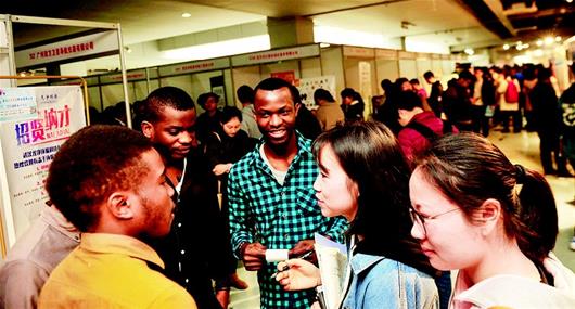 楚天都市報記者現場(chǎng)看到,求職的人群中,10來(lái)個(gè)非洲留學(xué)生的身影引人注目。記者采訪(fǎng)了其中一名留學(xué)生吉斯,他來(lái)自埃塞俄比亞,現在是湖北工業(yè)大學(xué)電氣與電子工程學(xué)院大四學(xué)生,想在武漢找一份工作,向現場(chǎng)多家企業(yè)投出了自己的簡(jiǎn)歷。吉斯說(shuō),他覺(jué)得武漢發(fā)展很快,生活工作越來(lái)越方便,希望能在這里找一份4000元月薪的工作!跋啾绕渌痪(xiàn)城市,武漢的生活成本低很多,而且我也很熟悉很喜歡這里!