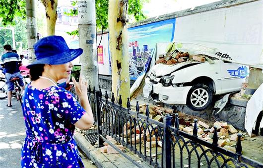 昨日上午11時(shí)許,學(xué)員李先生坐在江岸區匯通路一處駕校的辦公板房旁忐忑不安,幾分鐘前他練車(chē)時(shí)將油門(mén)當剎車(chē),把駕校的院墻撞出比門(mén)框還大的洞。