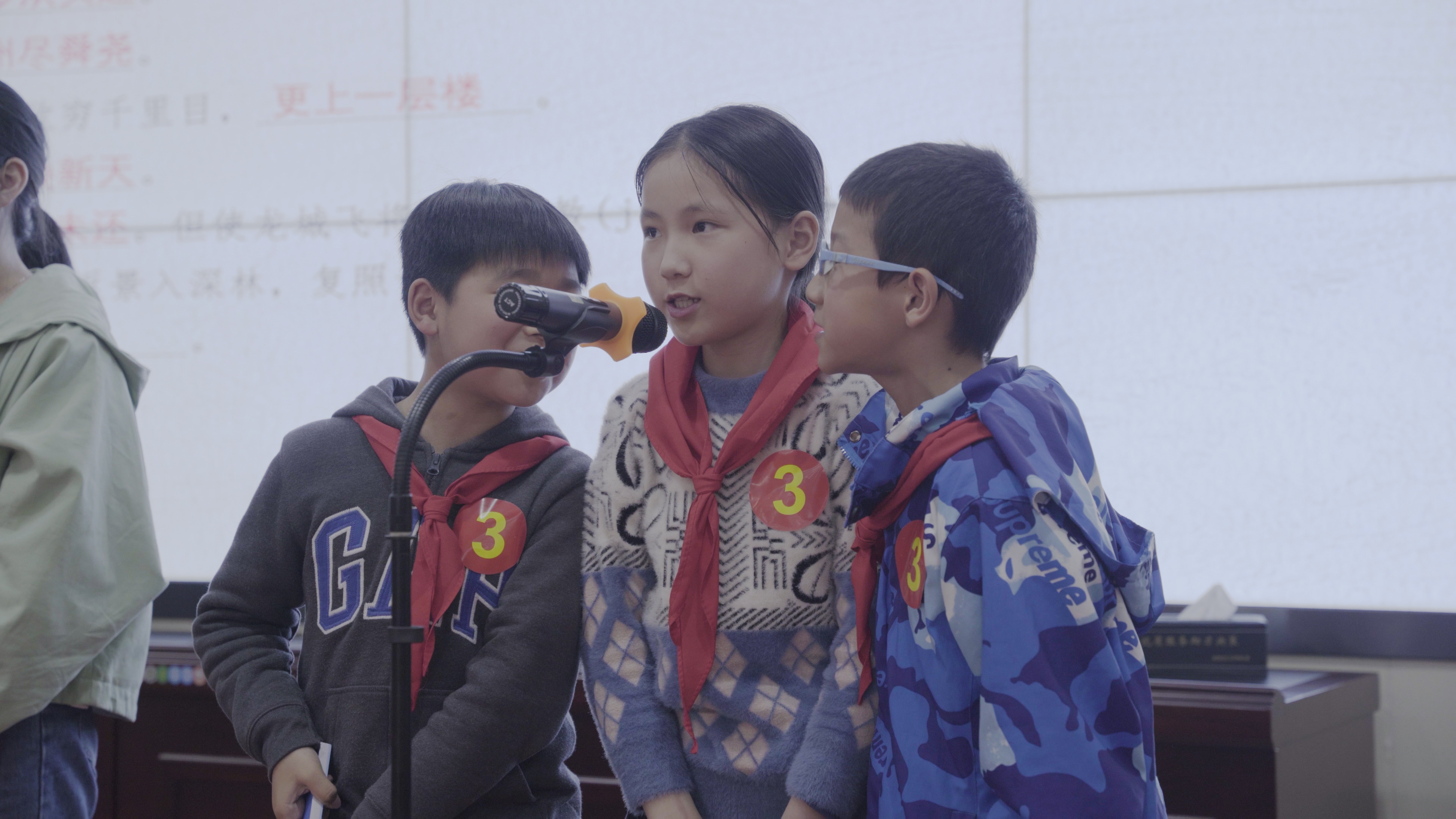 由解放橋小學(xué)五年級學(xué)生黃紫萱、李宗喆、何智昂組成的童心向黨隊與他們老師參與的心想詩(shī)成隊同臺比拼,亮點(diǎn)十足、讓人十分期待。比賽中,3名小學(xué)生用稚嫩而堅定的童聲,整齊劃一、秒給答案,《沁園春 長(cháng)沙》《憶秦娥 婁山關(guān)》等詩(shī)詞流利作答,贏(yíng)得現場(chǎng)陣陣喝彩。
