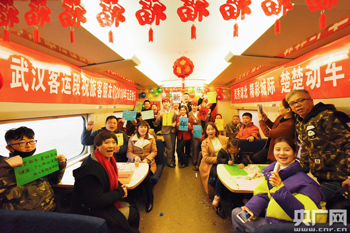 武漢客運段城際動(dòng)車(chē)組車(chē)間黨總支書(shū)記章瓊表示,武漢客運段一直致力于打造精品文化列車(chē),2018年元旦來(lái)臨之際舉辦這個(gè)活動(dòng)是為了讓旅客展望新年,感受祝福,讓旅途更加溫馨溫暖,如同高速發(fā)展的中國鐵路一般,駛向美好的未來(lái)。