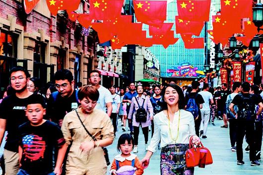 圖為:10月3日,武漢漢街游人如織,人頭攢動(dòng)。(湖北日報全媒記者 梅濤 攝)
