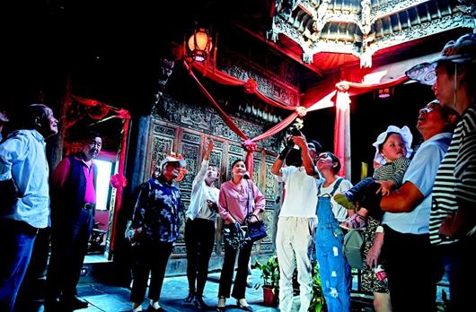 圖為:10月4日,武漢市新洲區鳳娃古寨景區,游客游覽古民居建筑,欣賞民俗歌舞表演。(湖北日報全媒記者 劉曙松 通訊員 沈雷平 攝)