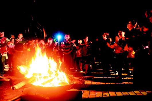 圖為:10月3日,在來(lái)鳳縣革勒車(chē)鎮豹子溝村“梁子上民俗院落”,村民跳擺手舞、打連廂,用滿(mǎn)滿(mǎn)的民俗味,歡迎遠道而來(lái)的客人。(視界網(wǎng)姚丙然 攝)