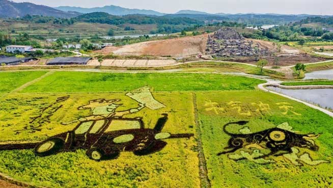 舉辦“農民豐收節”主題活動(dòng),稻草編制系列造型反映農耕細節,游客可以參觀(guān)、游覽、互動(dòng)。