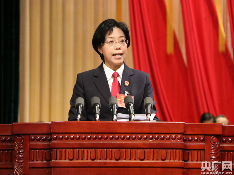 圖為李靜向大會(huì )作湖北省高級人民法院工作報告(攝影:張卓)