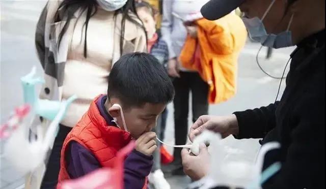 糖畫(huà)匠人正在用糖漿畫(huà)糖畫(huà),吸引了眾多小朋友前來(lái)圍觀(guān)。