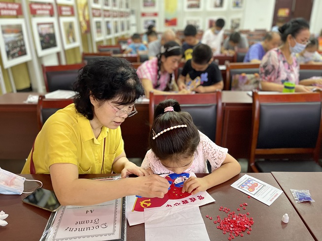 無(wú)獨有偶,梨園街道東山亭社區以“學(xué)黨史、強信念、跟黨走——我的青春正當紅”為主題,由志愿者帶著(zhù)孩子們了解中國共產(chǎn)黨的歷史,學(xué)習黨的光榮傳統和優(yōu)良作風(fēng)。