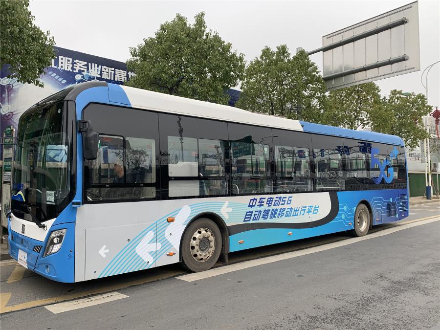 中車(chē)電動(dòng)無(wú)人駕駛公交車(chē)正在長(cháng)沙智慧公交示范線(xiàn)上平穩行駛。新華社記者 張丹 攝