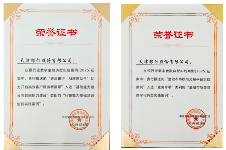 天津銀行兩大案例入選“銀行業(yè)數字金融 典型實(shí)踐案例”