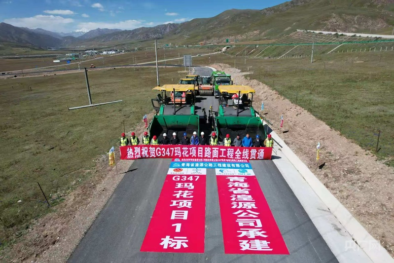 瑪花公路路面工程全線(xiàn)貫通(央廣網(wǎng)發(fā) 青海省交通運輸廳供圖)