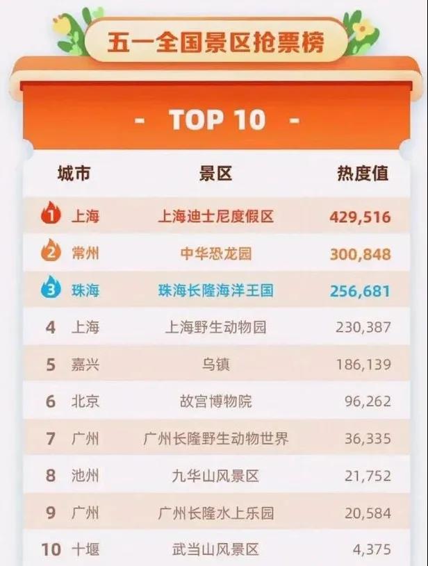 節日期間,環(huán)球恐龍城旅游度假區迎來(lái)了全國各地43.7萬(wàn)游客,其中,中華恐龍園景區位列飛豬旅行“五一全國景區搶票榜”第二,并榮登驢媽媽《2021五一出游總結報告》“全國熱門(mén)景區TOP10”和“華東熱門(mén)景區TOP10”雙榜。