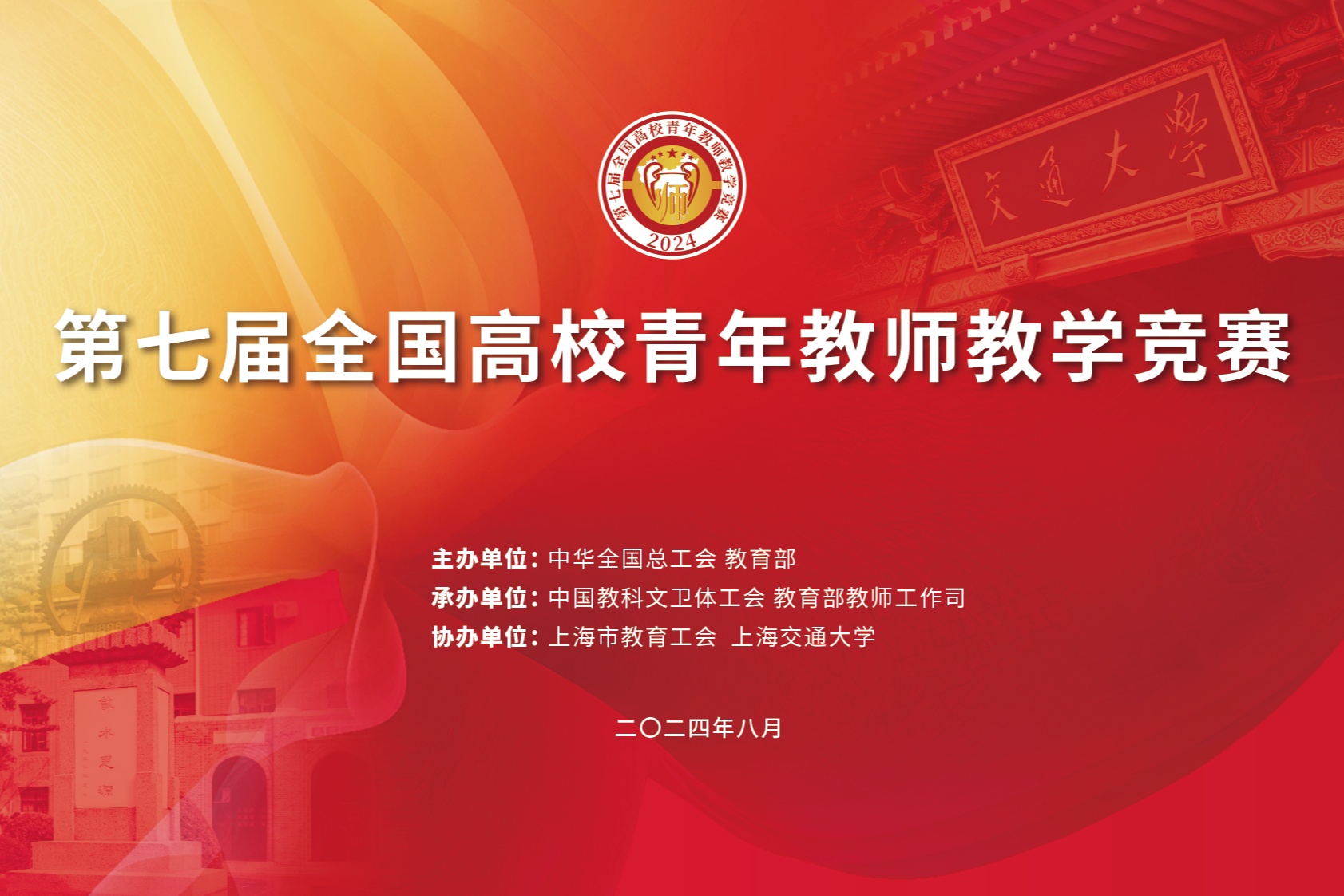 第七屆全國高校青年教師教學(xué)競賽決賽于2024年8月26日至30日在上海交通大學(xué)舉行。