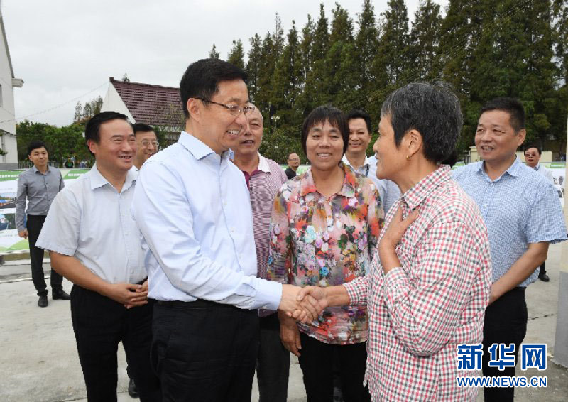 9月27日,韓正來(lái)到浦東合慶鎮勤奮村了解“五違”整治最新進(jìn)展,與村民黃月琴老媽媽交流。