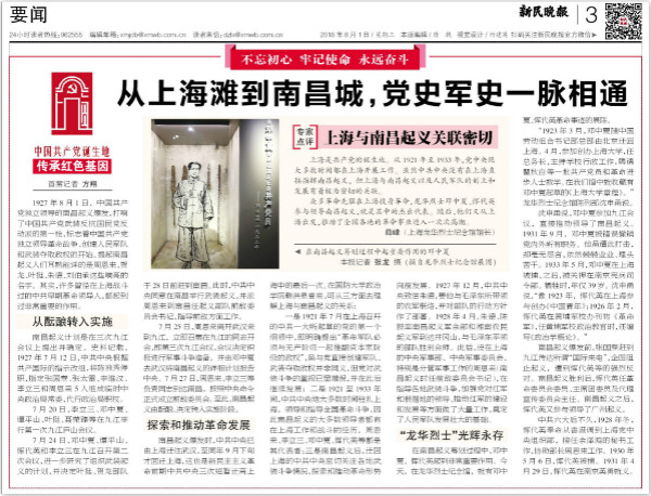 上海市共產(chǎn)黨的誕生地。從1921年至1933年,黨中央絕大多數時(shí)間都在上海開(kāi)展工作。雖然中共中央沒(méi)有在上海直接指揮南昌起義,但上海與南昌起義以及人民軍隊的創(chuàng )立和發(fā)展有著(zhù)極為密切的關(guān)聯(lián)。