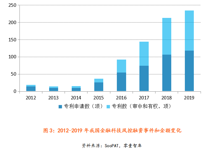 在專(zhuān)利方面,根據SooPAT數據顯示,自2014年開(kāi)始,國內與金融科技風(fēng)控相關(guān)的專(zhuān)利申請持續上升。2014年金融科技風(fēng)控專(zhuān)利申請數為10項,2019年申請數達到118項,5年間專(zhuān)利申請數年復合增長(cháng)率達63.82%。其中,在2012年至2019年間,阿里巴巴及支付寶共申請27項金融科技風(fēng)控專(zhuān)利,涉及支付、投資決策、賬戶(hù)安全、信貸等場(chǎng)景應用,是申請專(zhuān)利最多的企業(yè)。