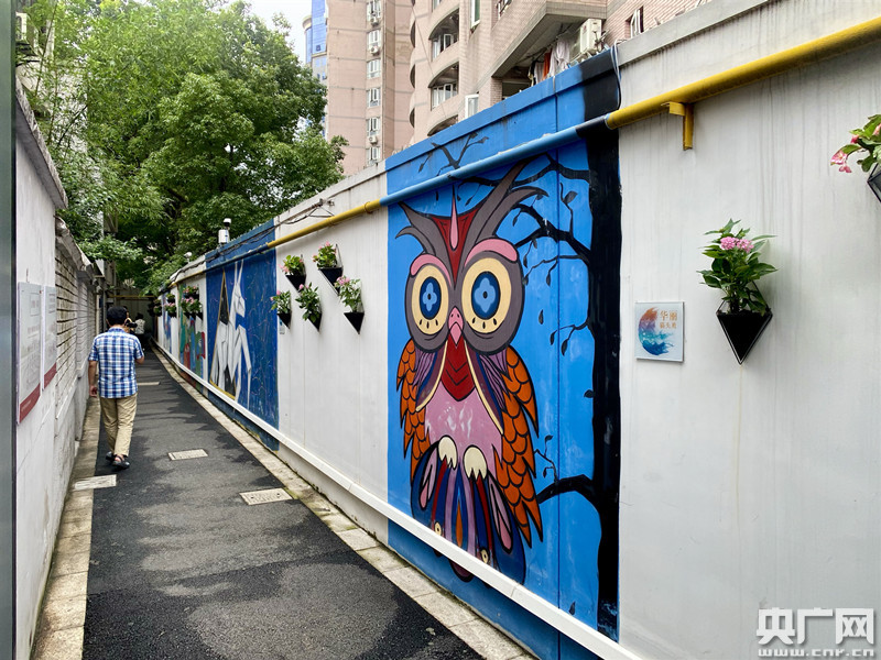上海國際藝術(shù)節的藝術(shù)大師帶領(lǐng)順天村居民留下社區特色涂鴉(央廣網(wǎng)記者唐奇云 攝)