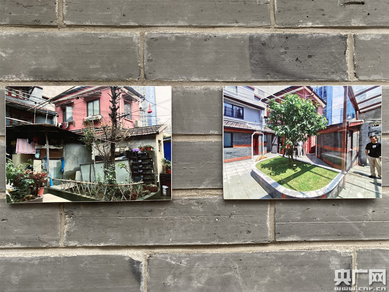 黃浦區南京東路街道江陰路72號內展示著(zhù)“微更新”前后的對照(央廣網(wǎng)記者唐奇云 攝)