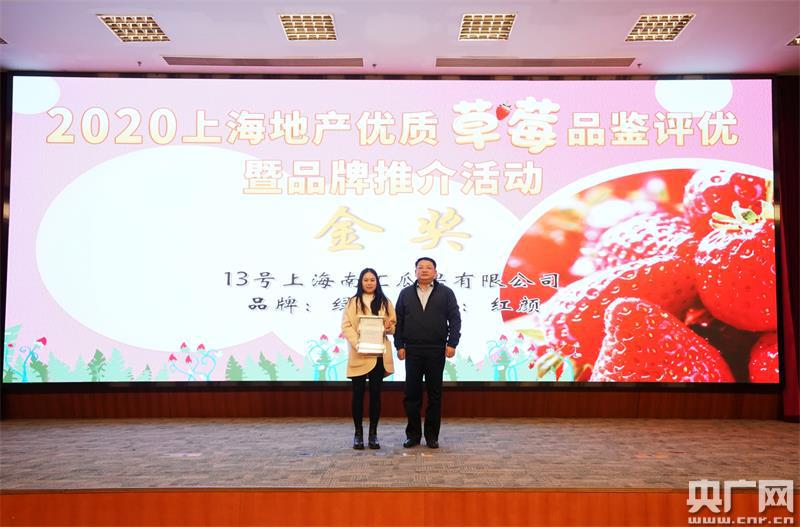 南匯瓜果有限公司獲得草莓金獎。上海市農業(yè)農村委員會(huì )黨組成員、副主任葉軍平為金獎獲得單位頒獎。
