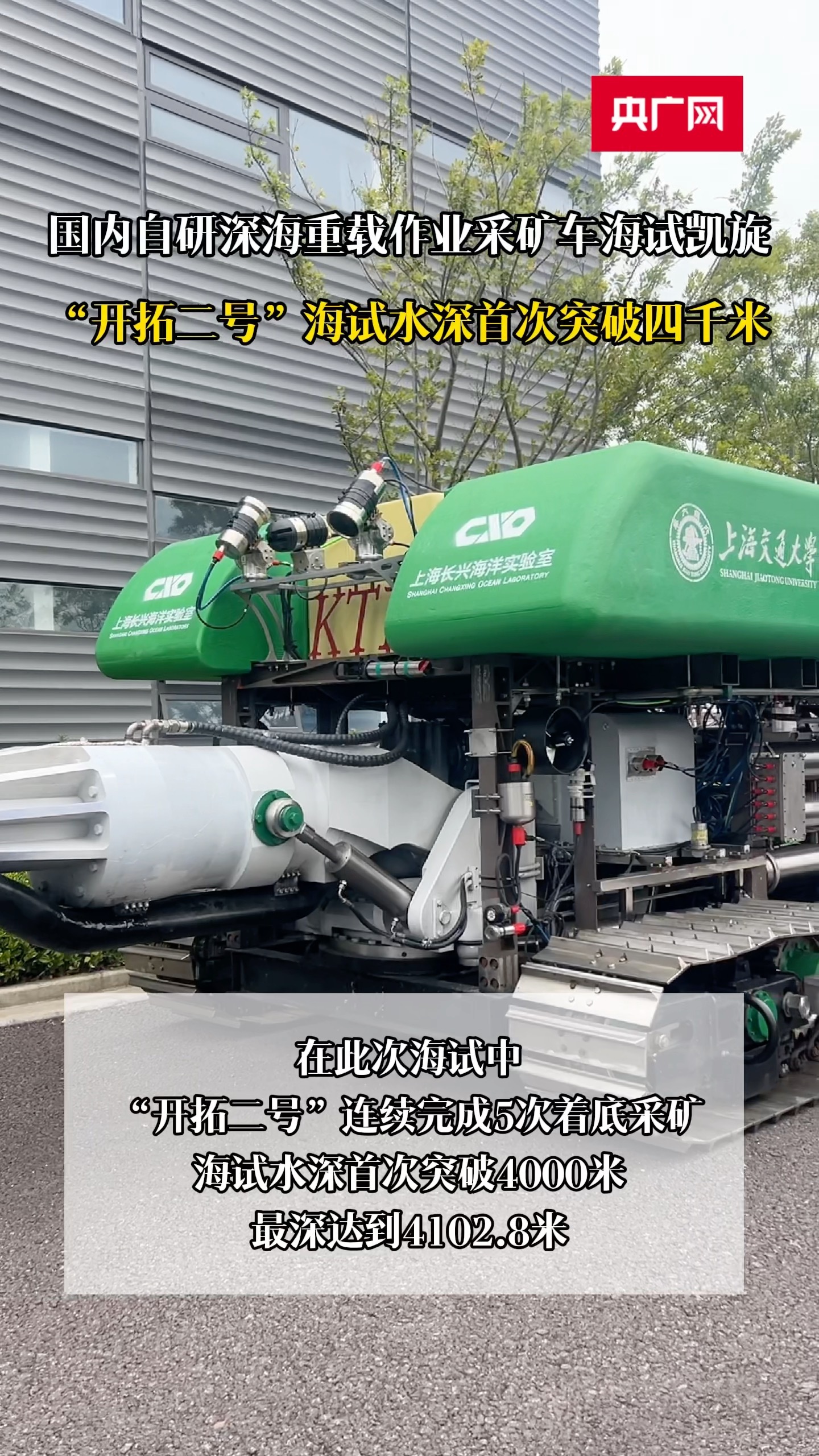 國內自研深海重載作業(yè)采礦車(chē)海試凱旋 “開(kāi)拓二號”海試水深首次突破四千米