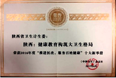 寶雞市、子長(cháng)縣被國務(wù)院表彰為全國公立醫院綜合改革成效較為明顯的市、縣,同時(shí)被國務(wù)院醫改辦確定為第一批公立醫院綜合改革示范市、第二批公立醫院綜合改革示范縣。延安市醫療集團做法被國務(wù)院醫改辦向全國推廣。我省通過(guò)健康教育和健康促進(jìn),構建大衛生大健康格局的做法,被評為全國2016年度“推進(jìn)醫改、服務(wù)百姓健康”十大新舉措之一。
