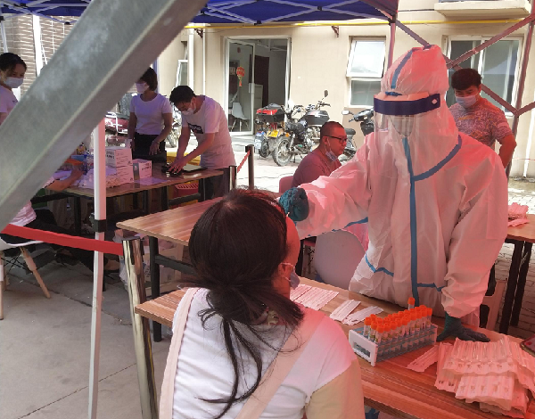 醫護人員高溫下進(jìn)行核酸采樣(央廣網(wǎng)發(fā) 高新區供圖)