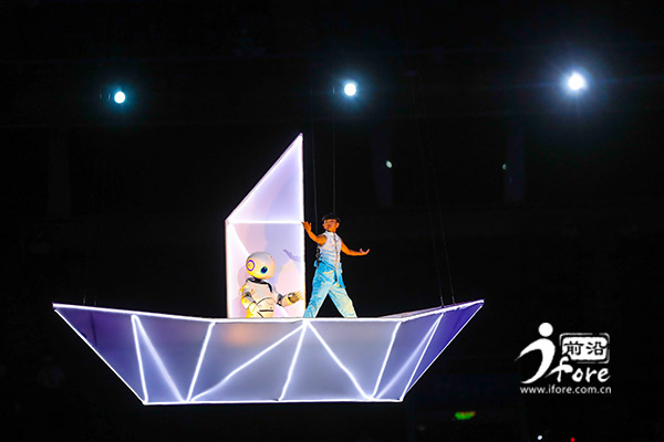 7月底,潘天順正式進(jìn)組訓練,每天訓練七八個(gè)小時(shí),從那時(shí)起他有了一個(gè)新的稱(chēng)呼——“津娃”,很多熟悉他的工作人員甚至不知道他的名字,漸漸地他也就習慣了人們這么叫他。開(kāi)幕式中“津娃”第一次出場(chǎng)需要吊威亞,聽(tīng)說(shuō)要吊威亞潘天順興奮不已,直到真的被游絲吊在15米的空中左搖右晃嚇得哇哇大叫的時(shí)候,他才知道沒(méi)那么簡(jiǎn)單。威亞訓練讓潘天順記憶猶新,吊威亞的游絲很軟,他不僅要在威亞上掌握平衡避免左右擺動(dòng),還要完成導演要求的指定動(dòng)作。他每次要在威亞上呆30到40分鐘,每天四五個(gè)小時(shí)被吊在高空,胯部和腰部經(jīng)常被威亞裝備勒出淤青。潘天順的指導老師魏珊珊告訴“津云”-前沿新聞?dòng)浾,不管多苦、多累,他從?lái)都不抱怨,每次都是老師主動(dòng)問(wèn)他,是不是累了,是不是需要休息。