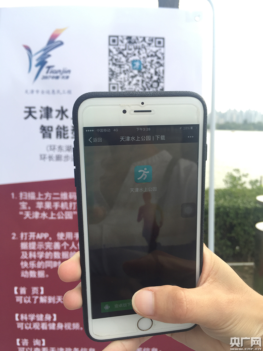 手機掃碼下載“天津水上公園”APP體驗智能音樂(lè )步道
