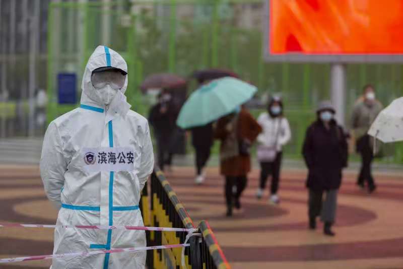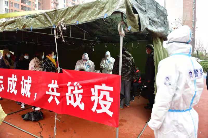 天津市濱海新區公安局公安干警引導居民有序排隊篩查(央廣網(wǎng)發(fā) 濱海新區公安局供圖)