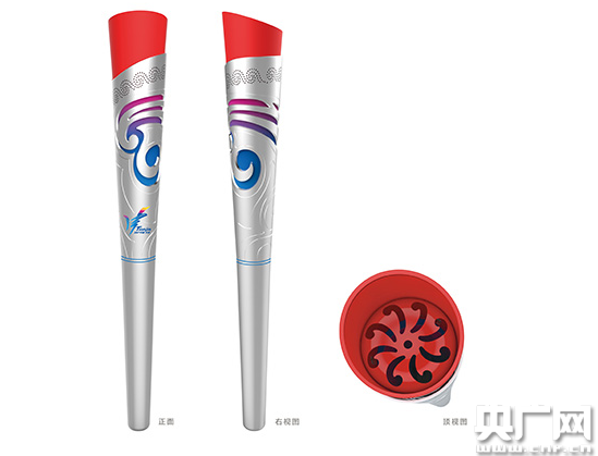據第十三屆全運會(huì )視覺(jué)設計工作室負責人、天津美術(shù)學(xué)院教授郭振山介紹,本屆全運會(huì )火炬設計有以下兩個(gè)特點(diǎn):一是圖形元素內涵豐富,采用了浪花的圖案展示出了天津的地方特征,同時(shí),動(dòng)態(tài)的造型又蘊含了巨大的力量,展示出運動(dòng)的內涵,浪花與祥云的融合傳遞出了中國的概念,也傳遞出吉祥和諧盛會(huì )的內涵;二是綜合材料工藝彰顯出時(shí)代的特征,火炬采用銀白色鏤空工藝及藍紫色漸變色的處理,賦予了火炬極強的時(shí)代氣息與特征。除了先進(jìn)的制作工藝之外,本屆全運會(huì )的火炬還充分考慮到環(huán)保要求,采用丙烯作為燃燒材料,環(huán)保無(wú)毒,符合“綠色全運”的理念。