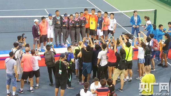 央廣網(wǎng)天津6月18日消息(記者 劉陽(yáng))6月18日,第十三屆全運會(huì )網(wǎng)球團體賽決賽在天津網(wǎng)球中心舉行。江蘇隊奪得男子組冠軍,天津隊奪得女子組冠軍。男子組最后決勝隊伍江蘇隊與浙江隊實(shí)力相近,最后以江蘇隊雙打配合優(yōu)勢險勝浙江隊。而女子組團體賽天津隊以?xún)擅麑?shí)力戰將張帥、彭帥,兩場(chǎng)單打以明顯優(yōu)勢奪得冠軍。