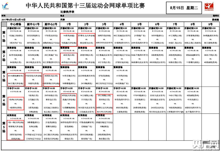 據了解,單打、雙打比賽項目均采用3盤(pán)2勝平局決勝制。18日、19日將分別進(jìn)行雙打和單打決賽。