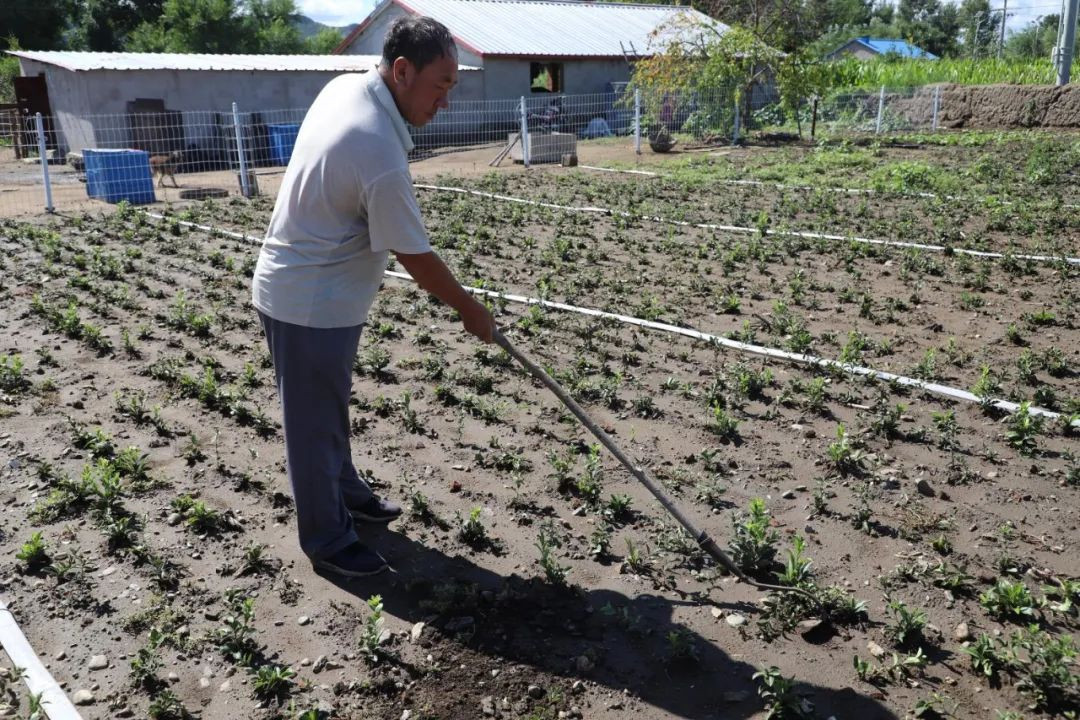 走進(jìn)內蒙古興安盟扎賚特旗巴達爾胡鎮寶日索格社區劉根柱家,只見(jiàn)院落整潔干凈、房屋窗明幾凈,庭院東側種植著(zhù)豆角、茄子、黃瓜等種類(lèi)繁多的蔬菜,西側則種植著(zhù)蒼術(shù),作物外圍的白色護欄更顯院落整體整潔明朗。