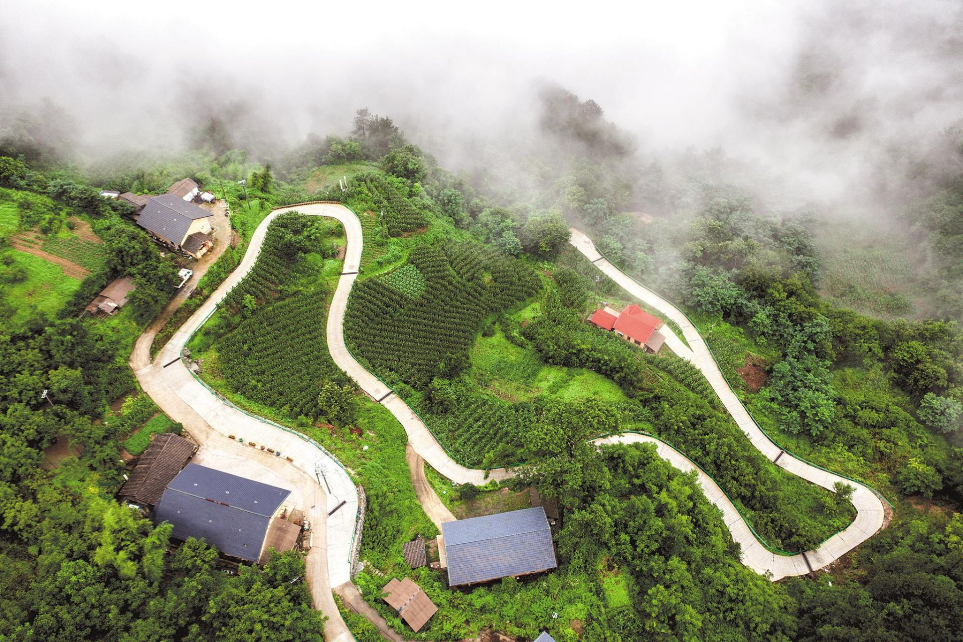 十堰市房縣野人谷鎮境內的“十回首”盤(pán)山公路。(湖北日報全媒記者 陳勇 攝)