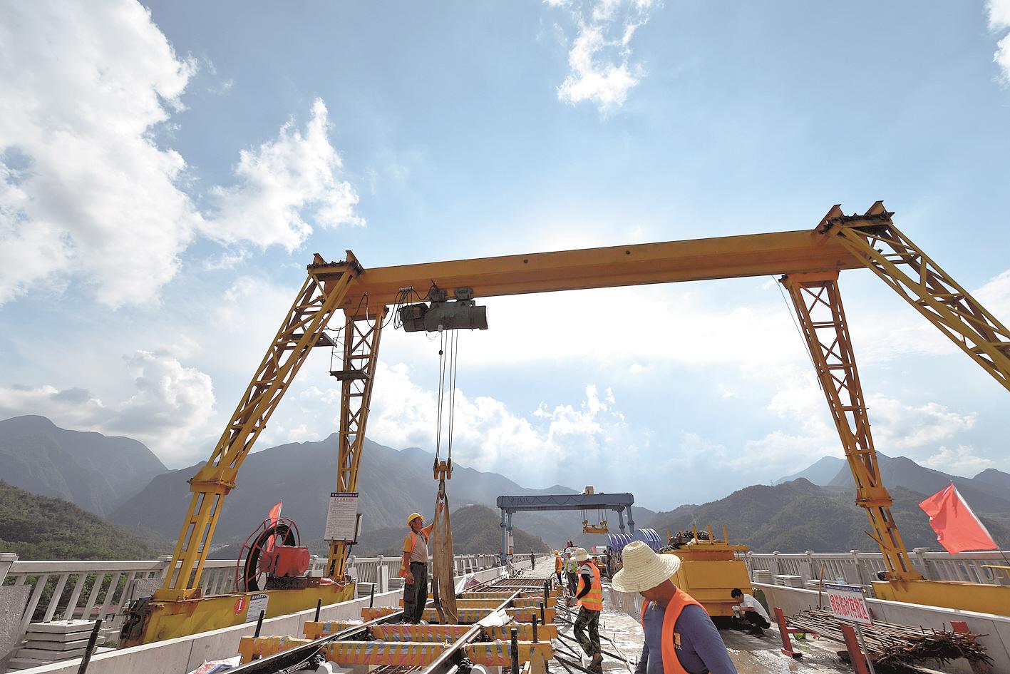 工人在保神高速公路后坪互通樞紐加緊建設。全長(cháng)43.3公里的保神(?抵辽褶r架)高速是湖北省“十三五”重點(diǎn)規劃項目,也是神農架林區通往外界的首條高速公路。(湖北日報全媒記者 田悅 通訊員 楊韜 攝)