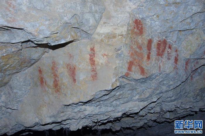 在梅龍達普洞穴遺址發(fā)現的巖畫(huà)(2018年8月3日攝)。新華社發(fā)