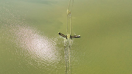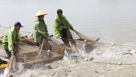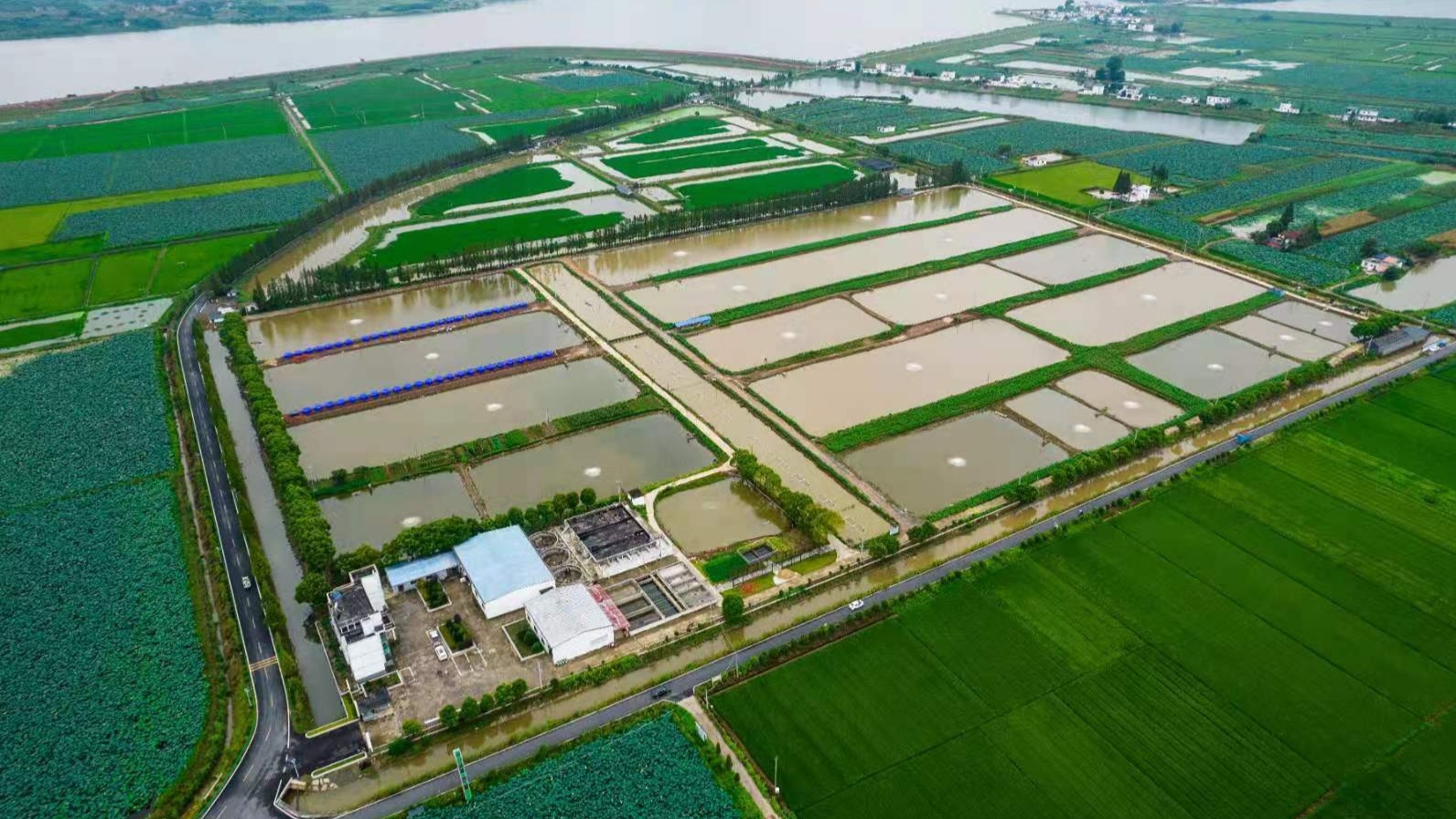 碧波蕩漾、水光瀲滟的湖面上,魚(yú)躍人歡,一片豐收喜悅。